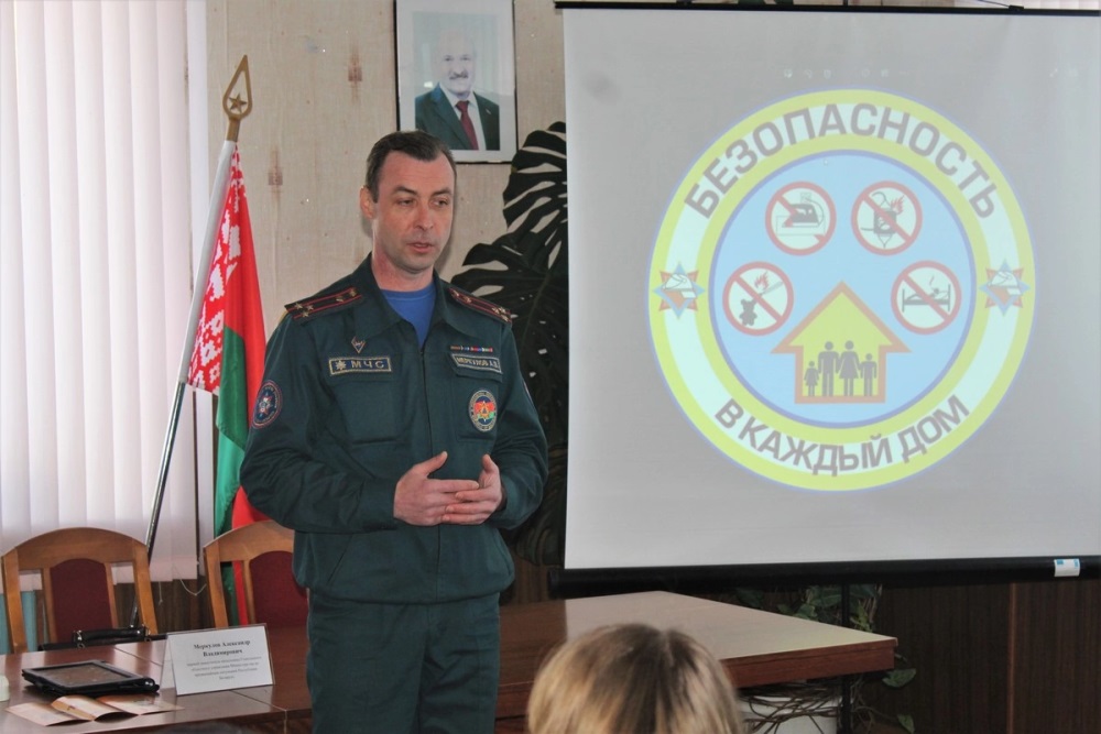 На завершающем ее этапе с сельскими жителями агрогородка Меркуловичи встретился первый заместитель начальника Гомельского областного управления МЧС Александр Меркулов.