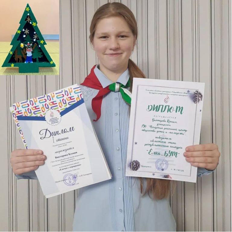 Работа учащейся районного центра творчества детей и молодежи Ксении Викторовой завоевала 1-е место в республиканском конкурсе «Елка-Бум»