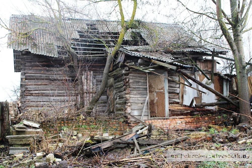 В Чечерске по улице Канашкова,10 в заброшенном доме уже обвалились кирпичная кладка и стена, на приусадебном участке разрослись деревья и кустарники, образовалась несанкционированная свалка.