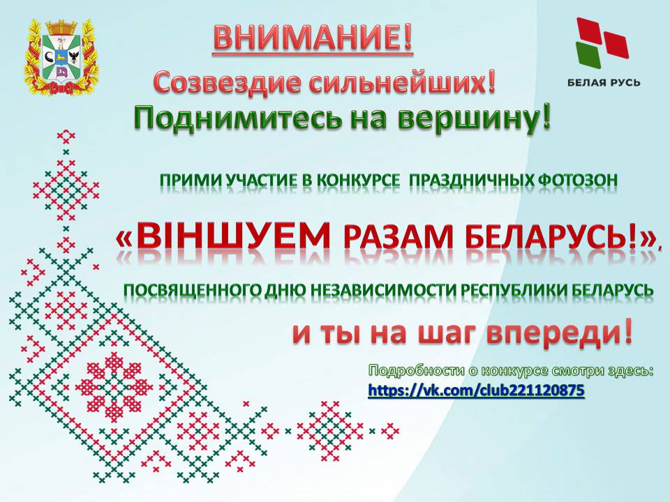 На Гомельщине объявлен конкурс праздничных фотозон “Віншуем разам Беларусь”, посвященный Дню Независимости Республики Беларусь.