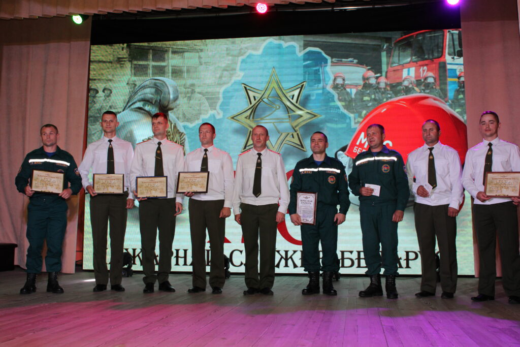 Труд мужественных огнеборцев оценен по- достоинству. На торжественной сцене вручены заслуженные награды. Почетной грамоты Гомельского областного управления Министерства по чрезвычайным ситуациям удостоен старший инструктор-спасатель Александр Гулевич. Благодарность управления МЧС объявлена первому заместителю начальника РОЧС Николаю Цитрикову, начальнику пожарной аварийно-спасательной части № 1 Леониду Родичу, начальникам дежурной смены Андрею Комиссарову и Андрею Новаку, старшему водителю группы материально-технического обеспечения ПАСЧ №1 Александру Трафимову, старшему инструктору-спасателю Андрею Дубинину. Почетная грамота районного исполнительного комитета вручена диспетчеру центра оперативного управления Славе Сорока. Благодарность райисполкома – награда для инспектора сектора пропаганды и взаимодействия с общественностью Дениса Гецмана, старшего инстуктора-спасателя Виталия Житникова, спасателя-пожарного Игоря Осипова. Получили памятные нагрудные знаки «165 год пажарнай службе» – начальник дежурной смены Александр Семенченко и «Выдатнік» – старший инструктор по вождению пожарной машины Александр Савченко. Все они вносят значительный вклад в предупреждение и ликвидацию чрезвычайных ситуаций. Мы каждый день чувствуем себя под надежной защитой наших спасателей.