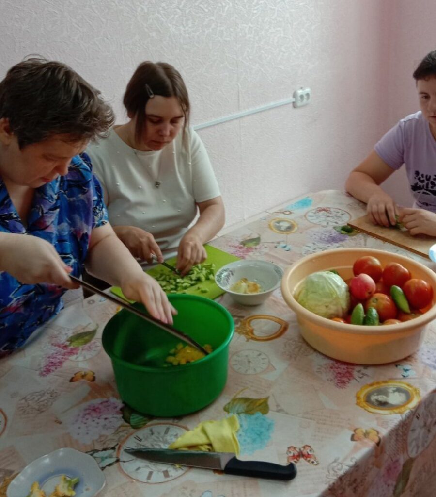 Также большое внимание уделяется трудовому обучению. Работает трудовая мастерская, где инвалиды постоянно что-то мастерят, а еще выращивают на приусадебном участке овощи и зелень, ухаживают за цветами. К слову, и умению приготовить пищу уделяется огромное внимание. Бутерброды, салаты, торты без выпечки и другие вкусные и оригинальные блюда под силу воспитанникам центра.