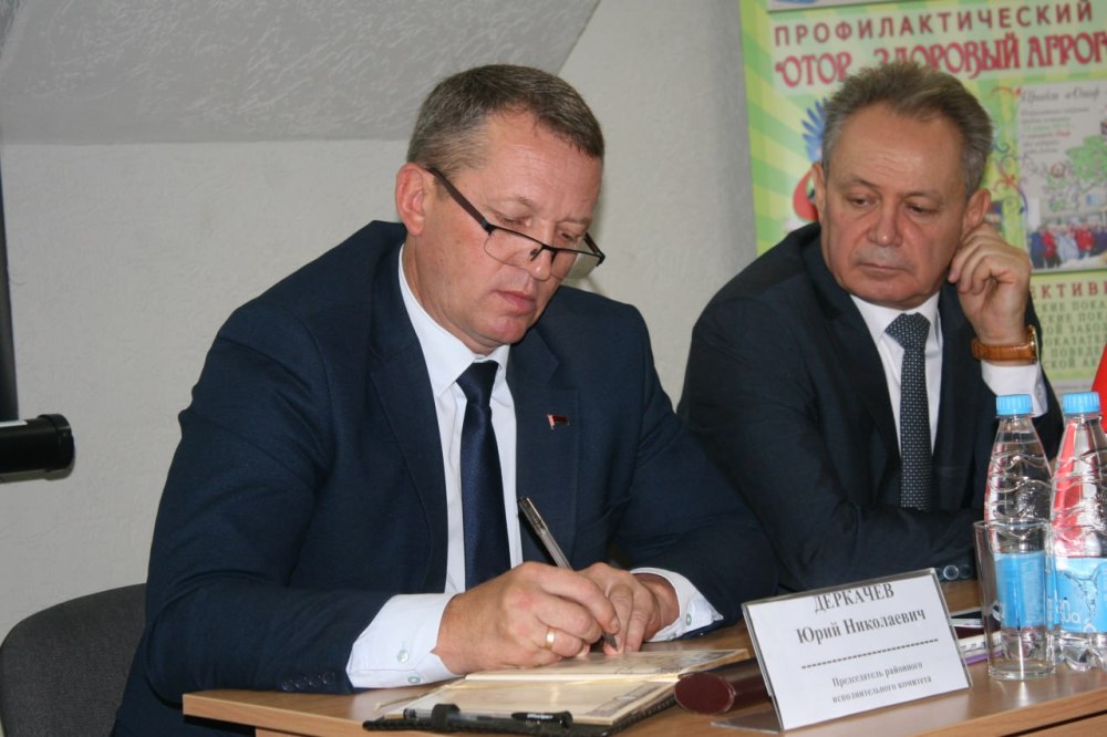 Глава района Юрий Деркачев и председатель Гомельского областного объединения профсоюзов Петр Кириченко встретились с коллективом районного центра гигиены и эпидемиологии, чтобы проинформировать трудящихся об основных принципах и приоритетах социальной политики государства, изменениях в законодательстве, вопросах безопасности и нюансах работы первичных профсоюзных организаций.