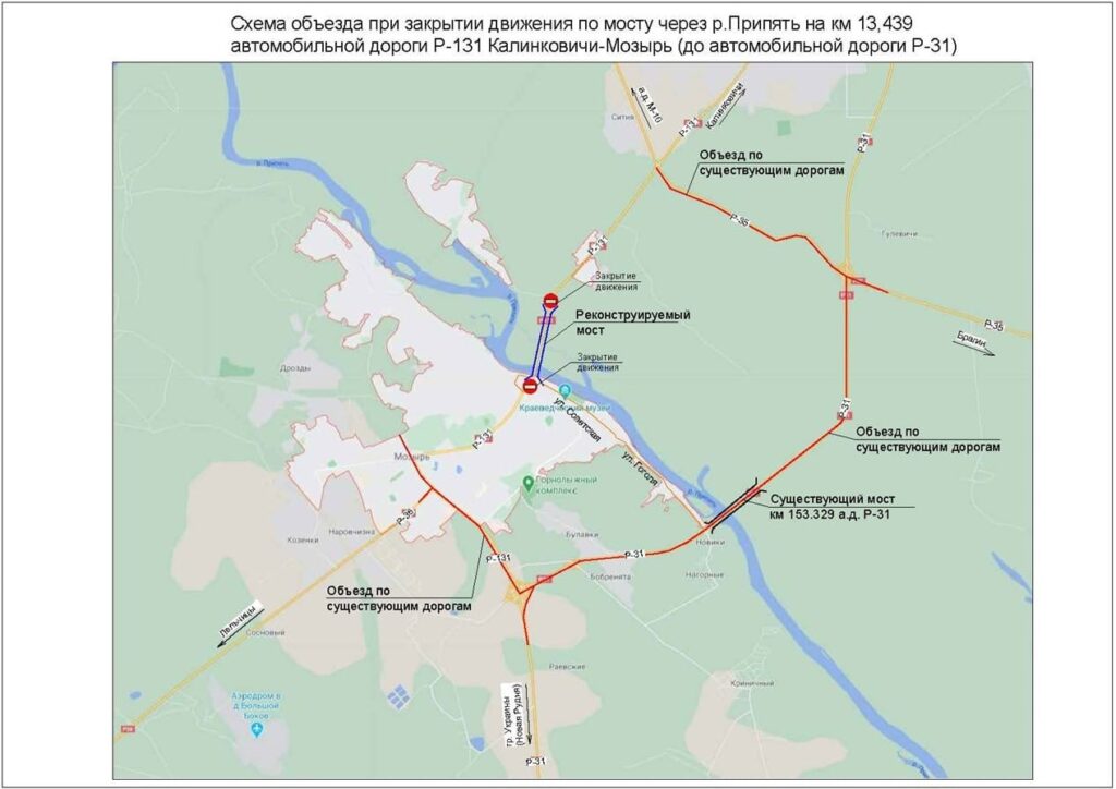 26 ноября с 8.00 закрывается движение по мосту через Припять на автодороге Калинковичи – Мозырь.