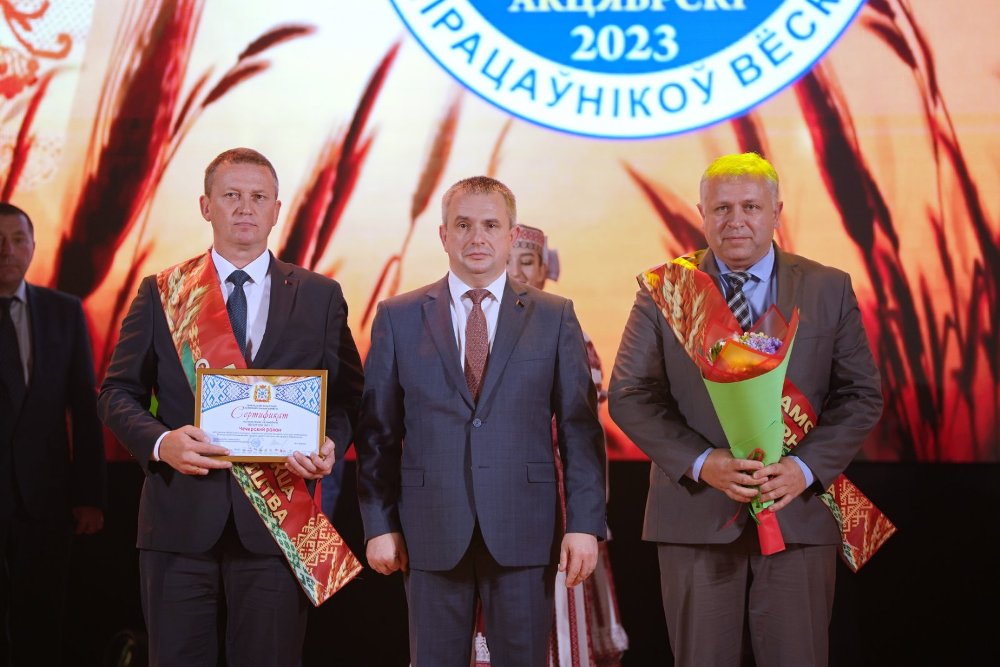 Подводя итоги работы и радуясь успехам, очень важно помнить, что за всеми достижениями и высокими показателями стоят конкретные люди: земледельцы, работники животноводства и представители многих других профессий, которые своим трудом помогли достичь достойных результатов. Весь регион благодарен аграриям за плодотворную работу: по традиции самой яркой частью празднования становится церемония награждения героев праздника. На сцене Центра досуга минуту славы получили комбайнеры, операторы зерносушильных комплексов, водители, инженеры и руководители хозяйств. Лучшим из лучших вручили почетные грамоты и благодарности разного уровня, своими наградами поощрили передовиков и профсоюзы. Неоднократно на сцену поднимались и чечеряне. Среди главных агрономов сельскохозяйственных и иных организаций с валовым сбором зерна до 7 тысяч тонн Юрий Батраков из ОАО «Отор» стал бесспорным лидером региона. Третье место на уборке урожая зерновых среди операторов зерносушильных установок у оторских тружеников Юрия Седова и Сергея Ильюшенко. За неустанный труд от темна до темна, за понимание важности стоящих перед ними задач, за преданность родной земле и белорусской деревне, за верность профессии наград удостоены трактористы-машинисты сельхозпредприятий «Отор» и «Звезда» Анатолий Кругликов и Владимир Дятлов, управляющей МТФ «Покоть» Оксана Мельникова. Не первый год чечерянам удается удерживать лидирующие позиции в областном смотре-конкурсе «Землепользование высокой культуры земледелия, благоустройство машинных дворов, животноводческих ферм и комплексов». Вот и в нынешнем сертификат на легковой автомобили Belgee X50 вручен главе района Юрию Деркачеву и первому заместителю председателя – начальнику управления сельского хозяйства и продовольствия Виктору Браточкину. Новенькие трактора «Беларус-82.1» пополнили машинно-тракторные парки сельхозпредприятий «Отор» и «Звезда», а автомобиль «Нива» отправился в Полесье.