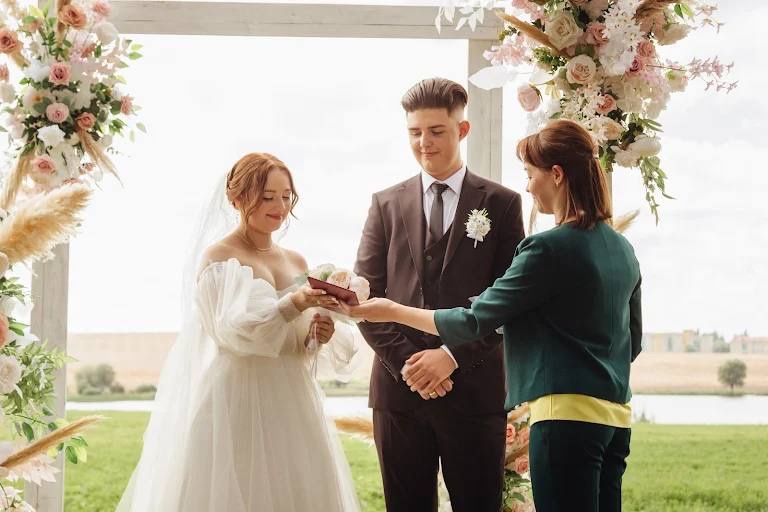 На выездной регистрации бракосочетания.