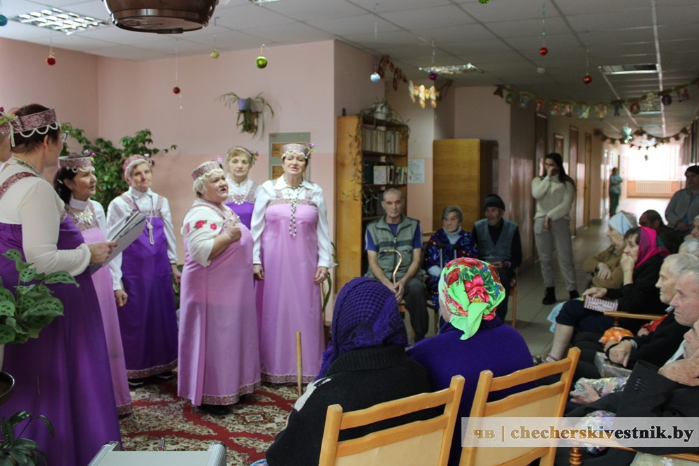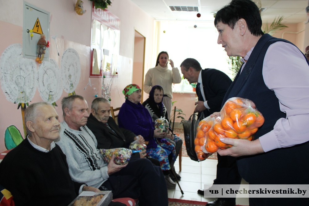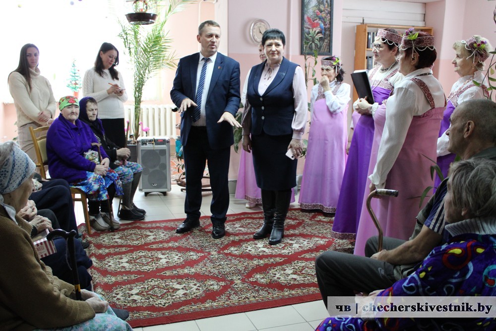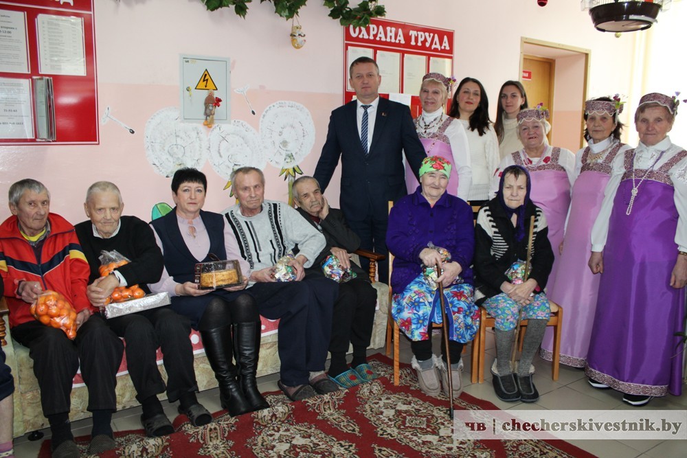 К убеленным сединами жителям Нисимковичской больницы сестринского ухода сегодня с поздравлениями и подарками приехали глава района Юрий Деркачев, депутат областного Совета депутатов, директор сельхозпредприятия «Звезда» Галина Трибунах, первый секретарь райкома БРСМ Яна Орлова, директор центра соцобслуживания населения Татьяна Уздовская. Гости привезли в подарок фрукты, сладости, торты. Ветеранский хор «Живица» порадовал душевным выступлением.