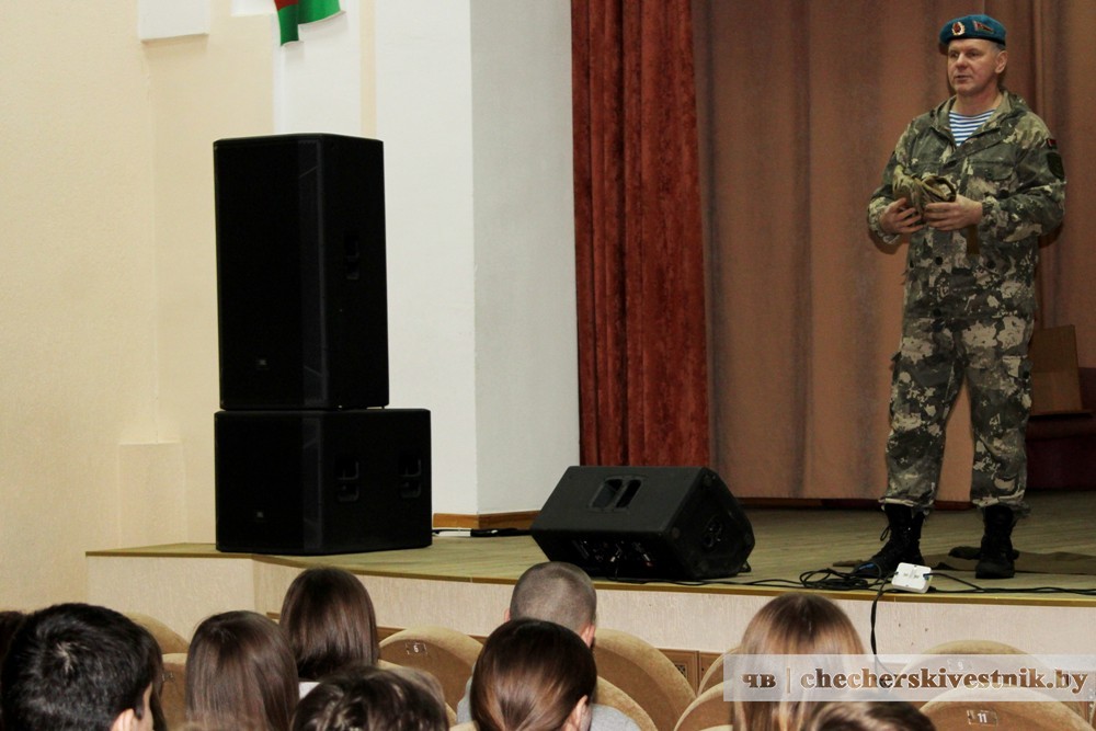 О том, как стать военным и о службе по контракту старшеклассникам городских школ и учащимся государственного техколледжа рассказал ведущий специалист группы организации на военную службу военного комиссариата Гомельщины Владимир Бухавцов.