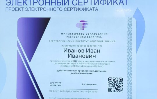 С 2026 года абитуриентам станет доступна электронная версия сертификата ЦЭ и ЦТ, заверенная электронной цифровой подписью. В системе образования Беларуси...